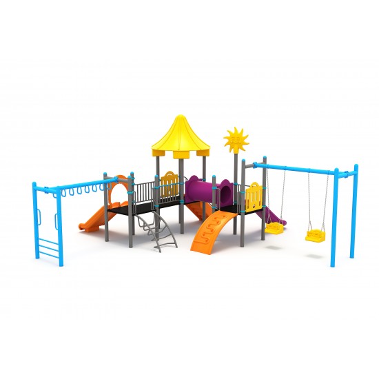 Çocukların güvenle oynayabilecekleri, sağlıkları için tehdit oluşturmayacak malzemeler kullanılarak üretilmiş, çeşitli park aktivitelerini bir arada bulunduran çocuk oyun grubu. Polietilen ve metal malzemelerden oluşur. Metal aksamlar açık hava koşullarına dayanıklı olacak şekilde galvanizlenir ve elektrostatik toz boya uygulanır. Polietilen parçalar renkli elektriklenmeyi önleyecek anti-statik özellikli ve sağlığa zararsız malzemeden üretilmiştir.